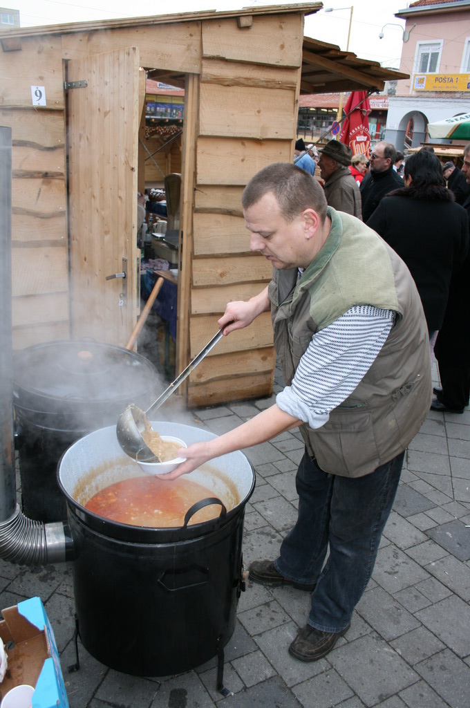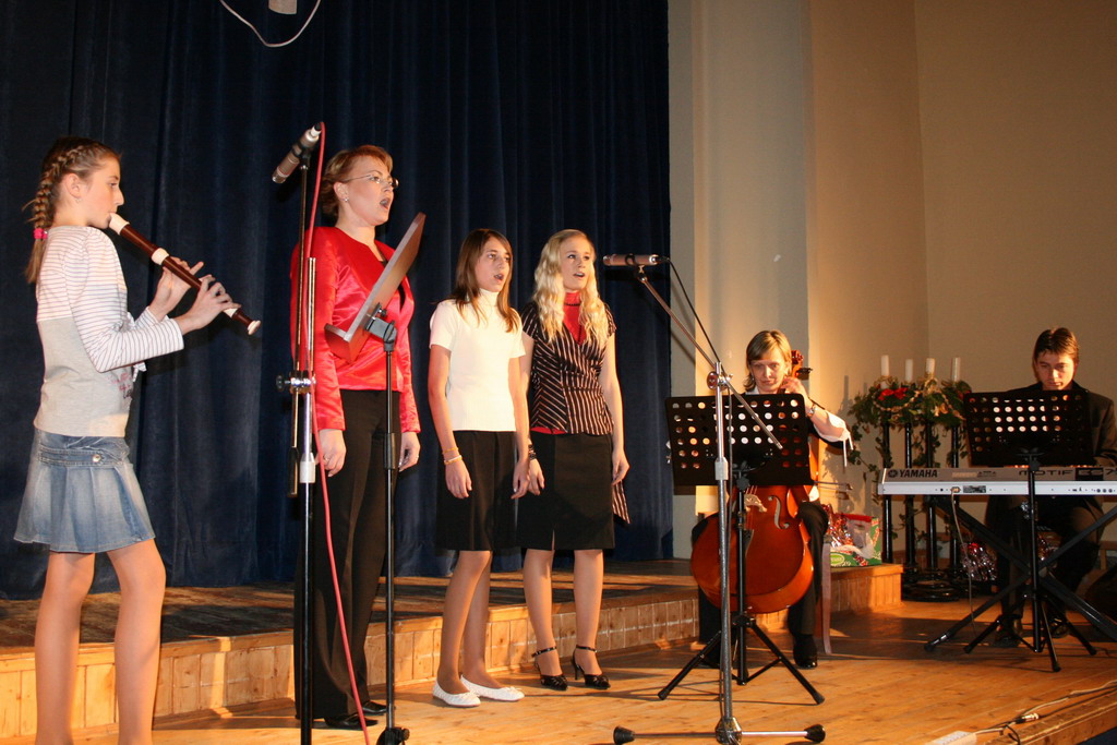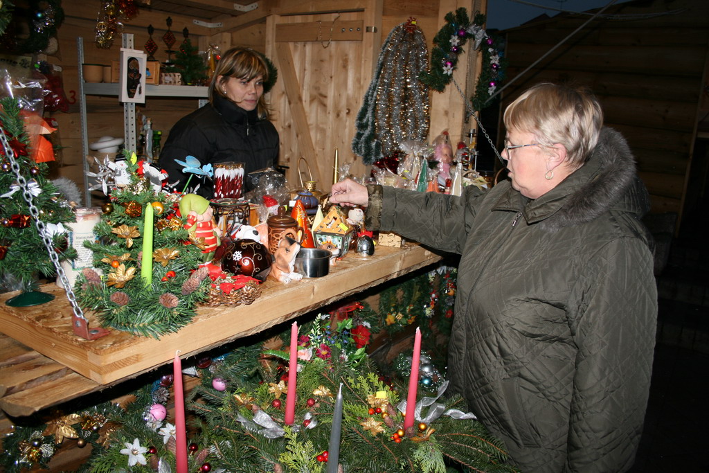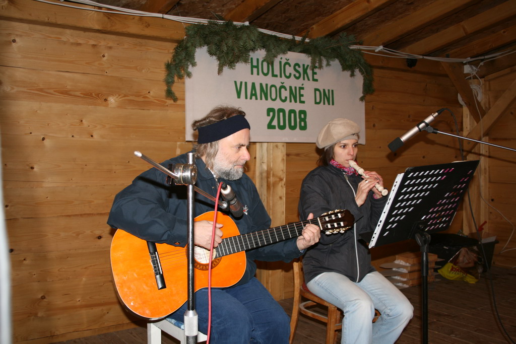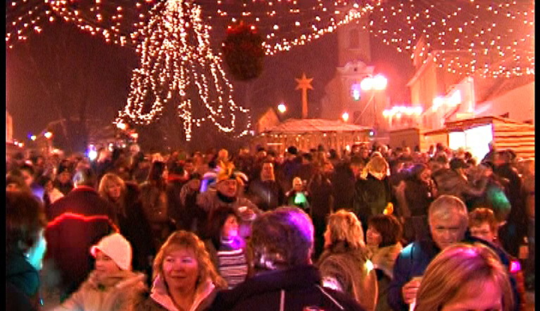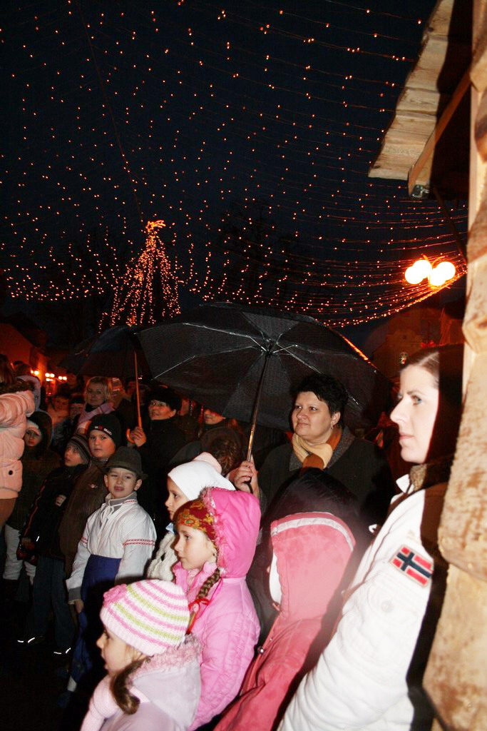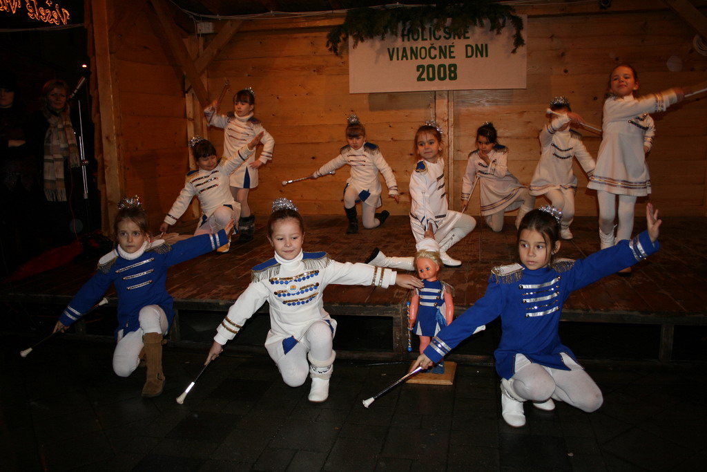 Predvianočný týždeň v tzv.adventnej dedinke z drevených stánkov na Námestí mieru s podvečernými vystúpeniami detí materských a základných škôl. December.