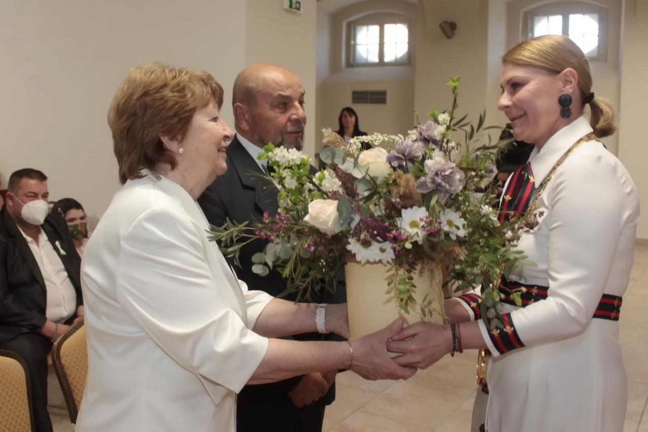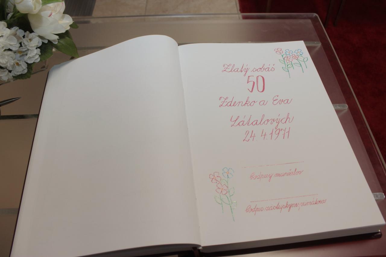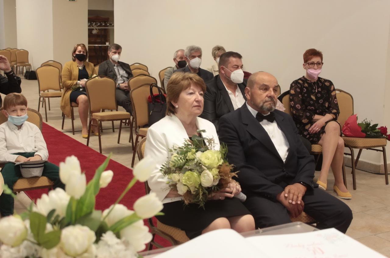 Dôstojnú atmosféru podujatia umocnili verše básne, spev i hrejivé melódie. Jubilujúcim manželom sa prihovorila zástupkyňa primátora Lenka Látalová. K jej blahoprianiu sa pripojili predstavitelia mesta a svoje gratulácia odovzdali tiež najbližší príbuzní a zúčastnení hostia.