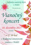Základná umelecká škola Holíč Vás pozýva na Vianočný koncert v stredu 10. decembra o 17.00 hod. v Kultúrno-osvetovom centre v Holíči.