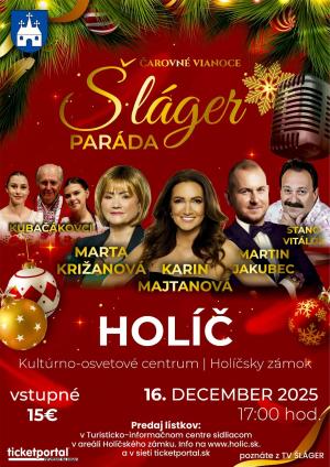 ŠLÁGER PARÁDA – Čarovné Vianoce na zámku Holíč. Galakoncert hviezd TV ŠLÁGER. 16.12.2025 17.00h. Kultúrno – osvetové centrum Holíčsky zámok