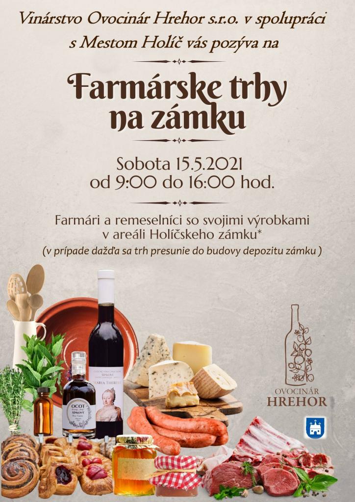 Milí Holíčania i cezpoľní, Ovocinár Hrehor s.r.o. v spolupráci s Mestom Holíč pozývajú na Farmárske trhy v areáli Holíčskeho zámku, príďte podporiť slovesnkých farmárov a užiť si pekný deň v krásnom prostredí Holíčskeho zámku a jeho okolia.