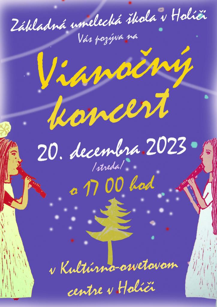 Základná umelecká škola v Holíči Vás pozýva na Vianočný koncert 20. decembra 2023 /streda/ o 17.00 hod. v Kultúrno-osvetovom centre v Holíči