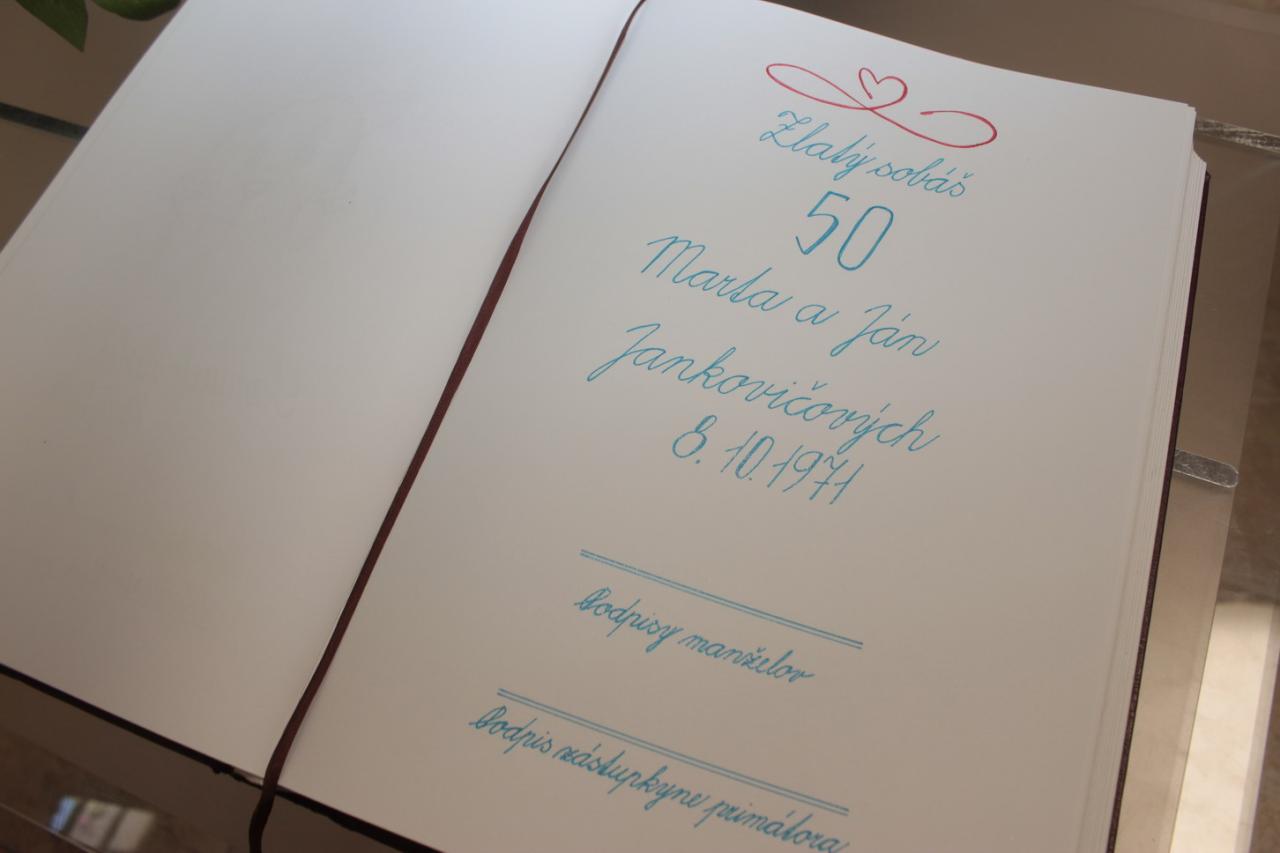 Oslávencom k zlatej svadbe zaželajme, aby ich láska kvitla aj v ďalších rokoch a manželské spolužitie sprevádzalo porozumenie, zdravie, šťastie a spokojnosť.
